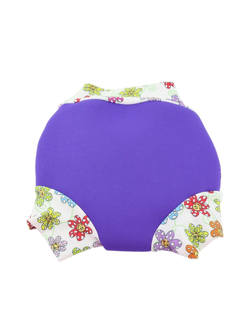 Neoprenové plavecké plenky - fialové plavky s veselým květinovým vzorem