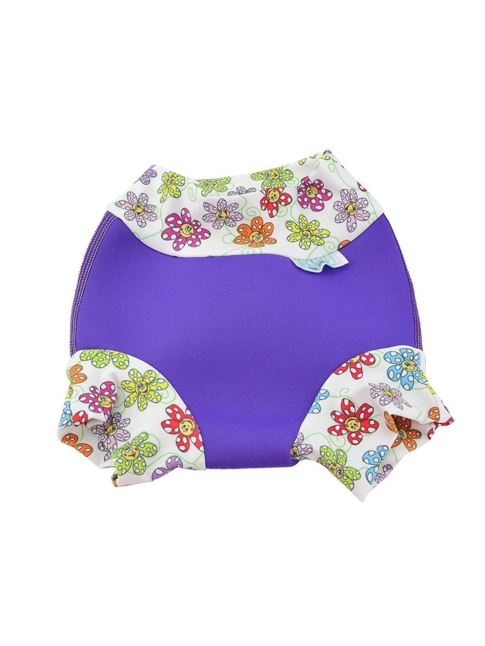 Neopren-Schwimmwindel - lila Badehose mit fröhlichem Blumenmuster