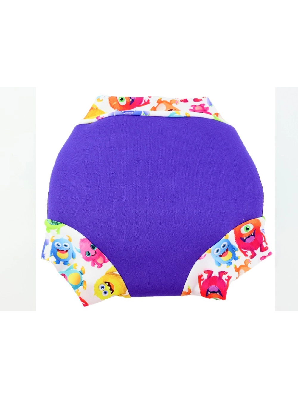 Neoprén úszópelenka - lila úszónadrág aranyos szörnyekkel