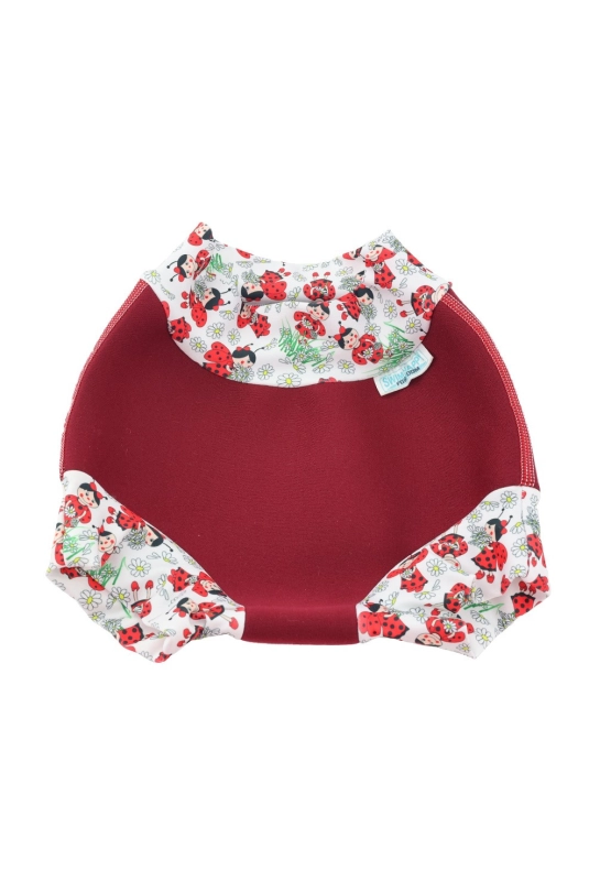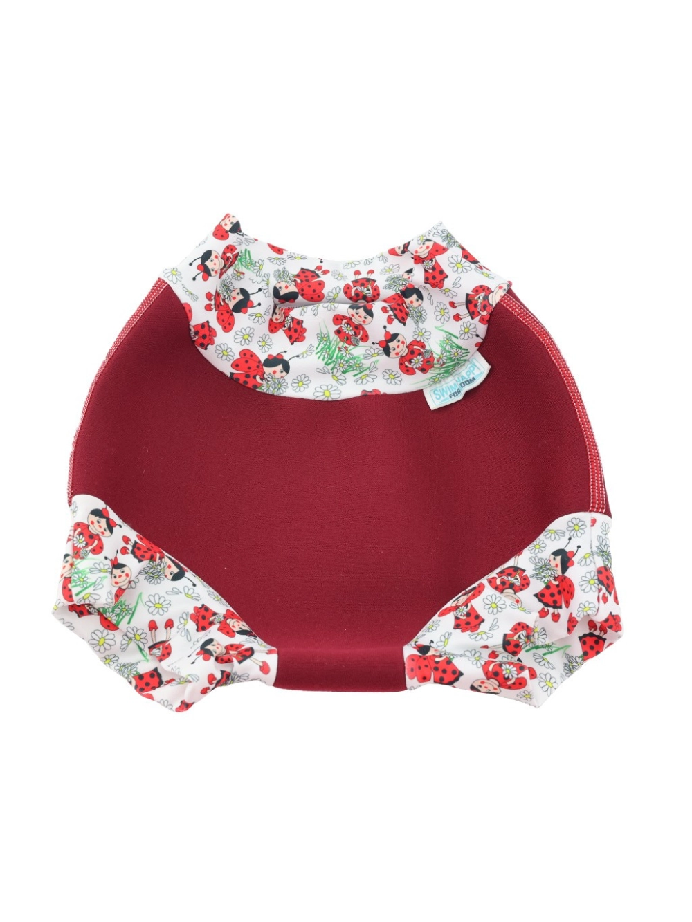 Neoprenowa pieluszka kąpielowa – bordowe kąpielówki z uroczymi biedronkami